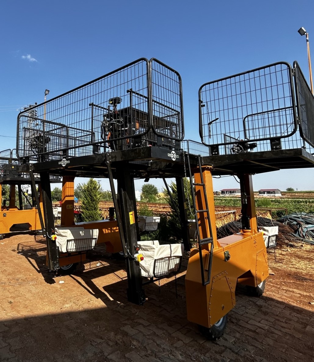 Tütün hasat makinesi, toplanan tütün yapraklarını asansörlerde bulunan sepetlere konularak makinenin üst kısmında bulunan platforma çıkartılıp paketlenerek istiflenmesine yarayan ve tarlanın bir başından girip diğer tarafından çıkıncaya kadar kendi üzerinde taşıyarak ilerleyen ve tarla çıkışında bekleyen nakliye araçlarına aktaran, böylelikle çalışan işçilerin tarla içerisinde git gel yapmamalarına ve yük taşımamalarını sağlayarak daha verimli çalışmaları sağlanmıştır. Makinenin kendi üzerinde taşıdığı yük kapasitesi de yaklaşık olarak 2,5 ton civarındadır. Hasat hızı ayarlanabilen düşük maliyetlerde çalışan bir makinedir. Makine kendi enerjisi ile aydınlatmaları olan gece çalışmalarına da uygun olan verimli bir makinedir.